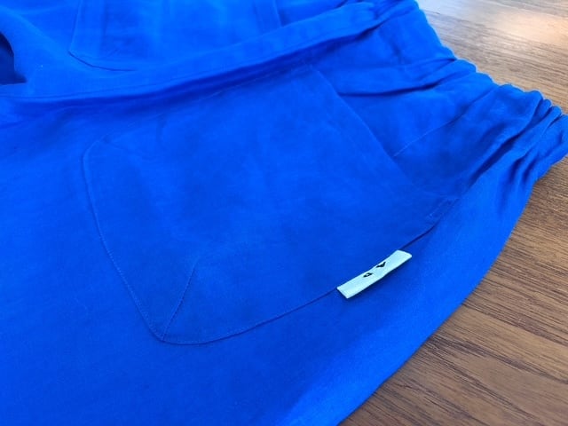 お尻を隠すかのごとく大きなポケットのデザインと、裾にもゴムが入っているので足さばきが良いのも自慢です。