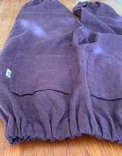 お尻を隠すかのごとく大きなポケットのデザインと、裾にもゴムが入っているので足さばきが良いのも自慢です。