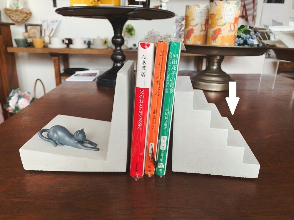 街にある階段をモチーフにしたセメント製ブックスタンドです。