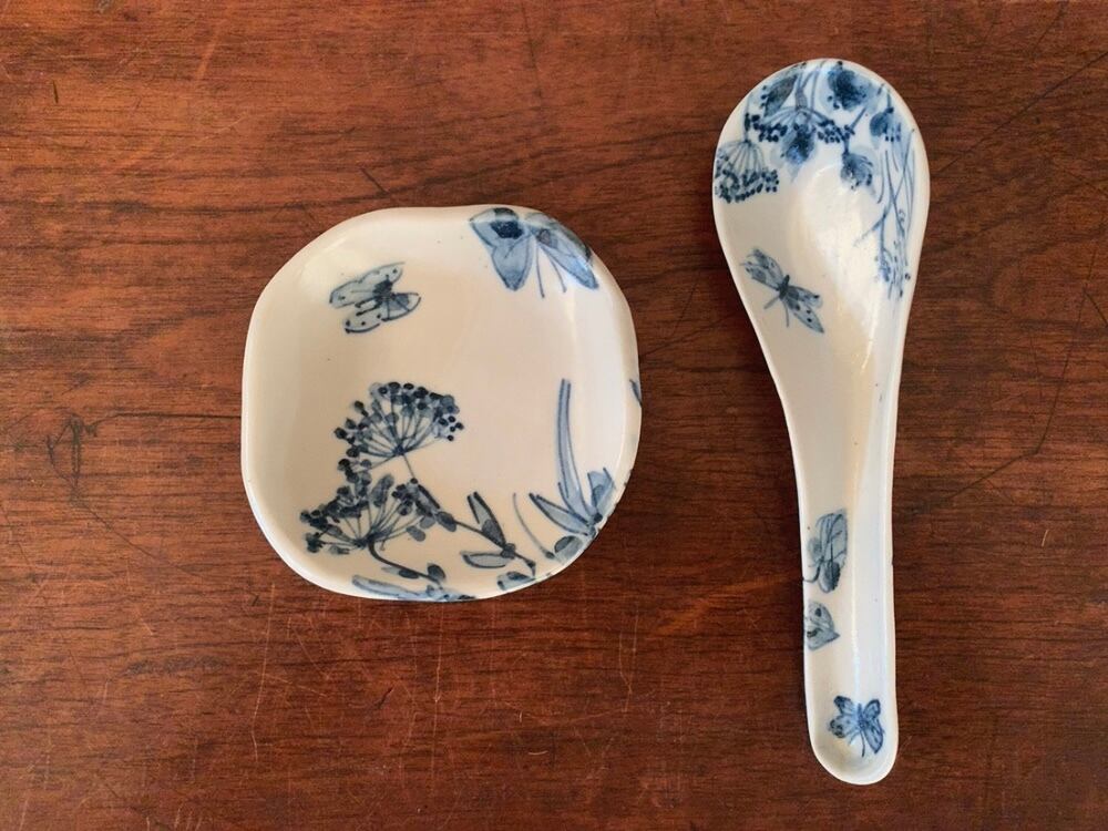 ムーニーともみ「レンゲ&豆皿」F 蝶花柄