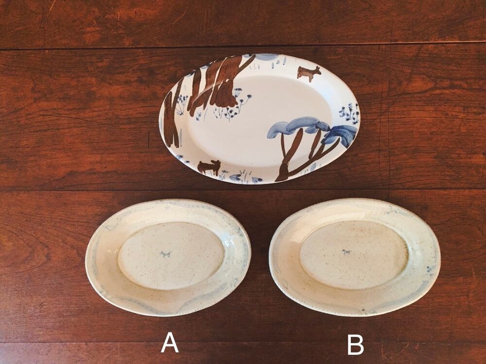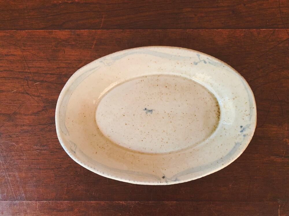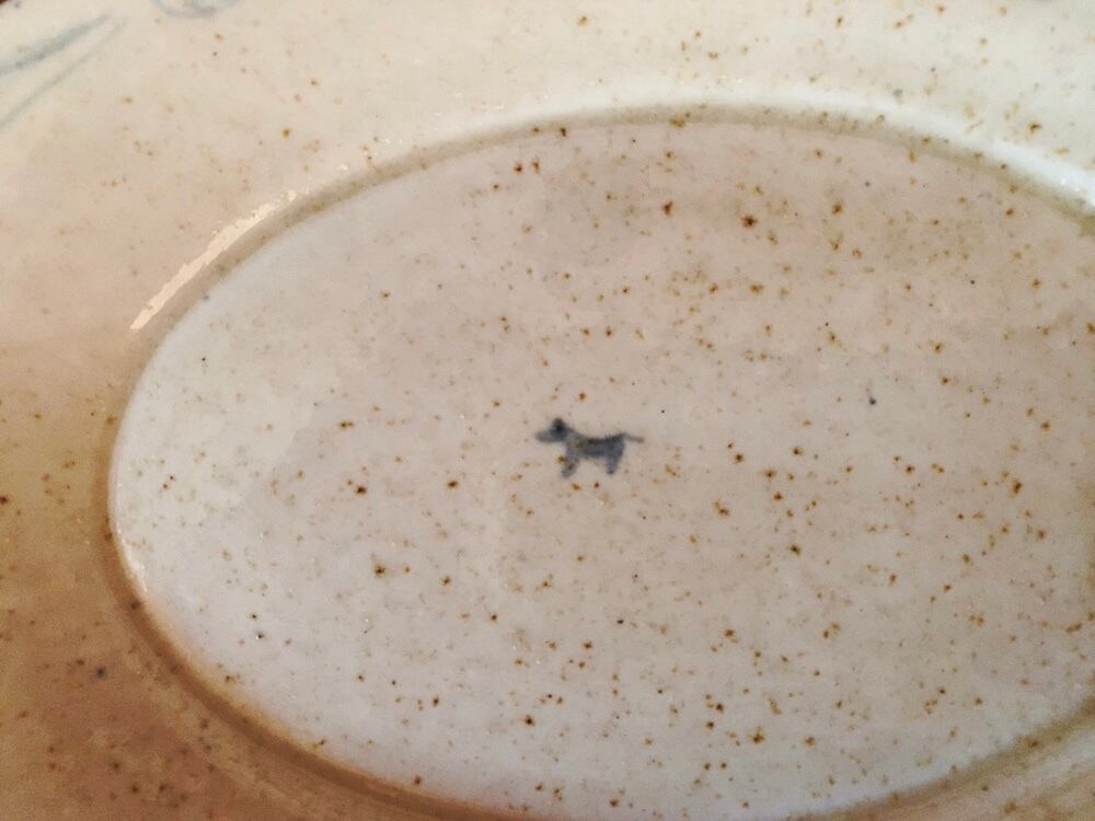 ムーニーともみ 「楕円皿・中」犬のまわりに鳥が舞う B