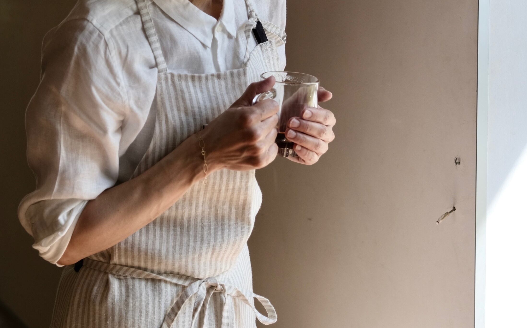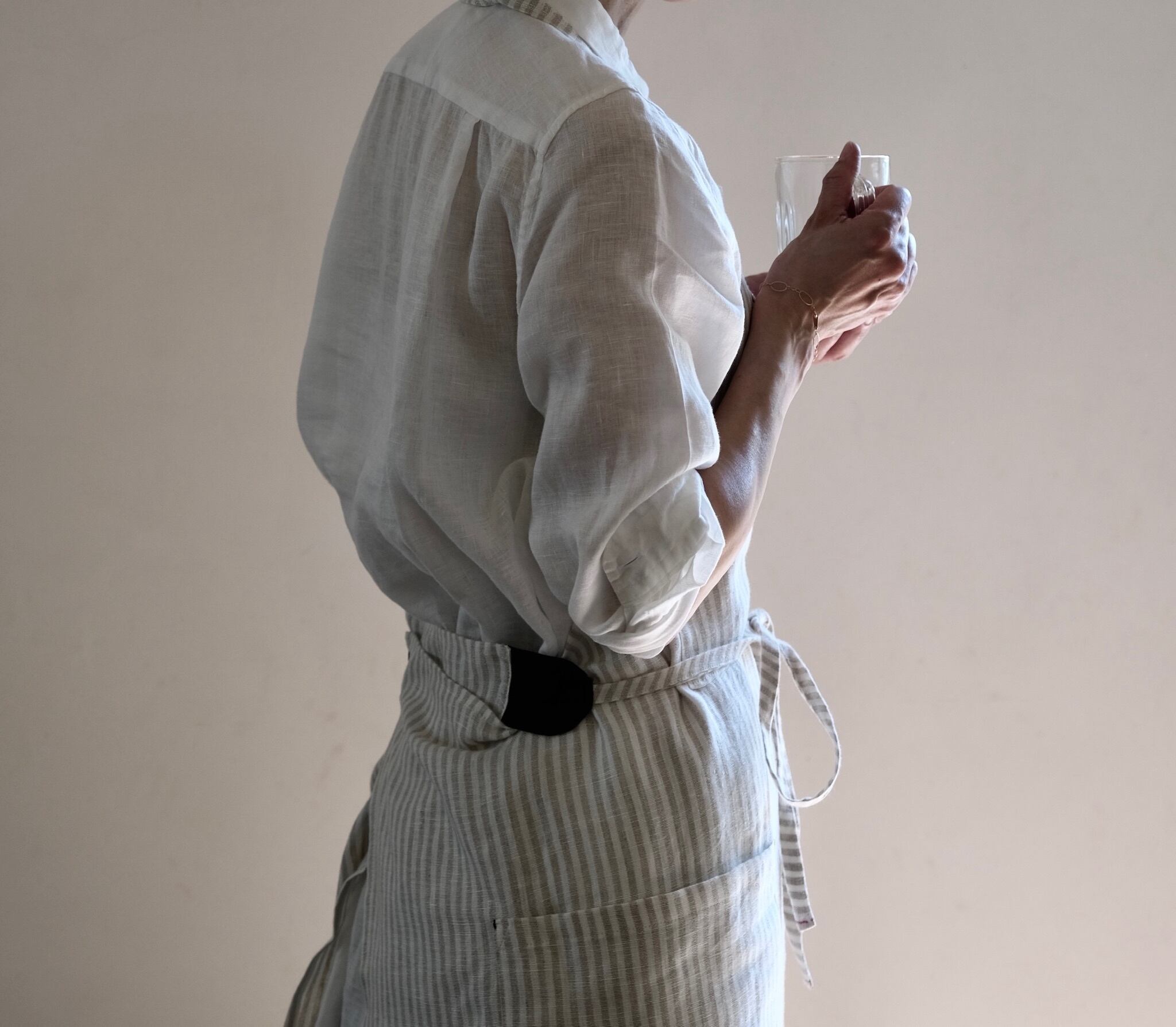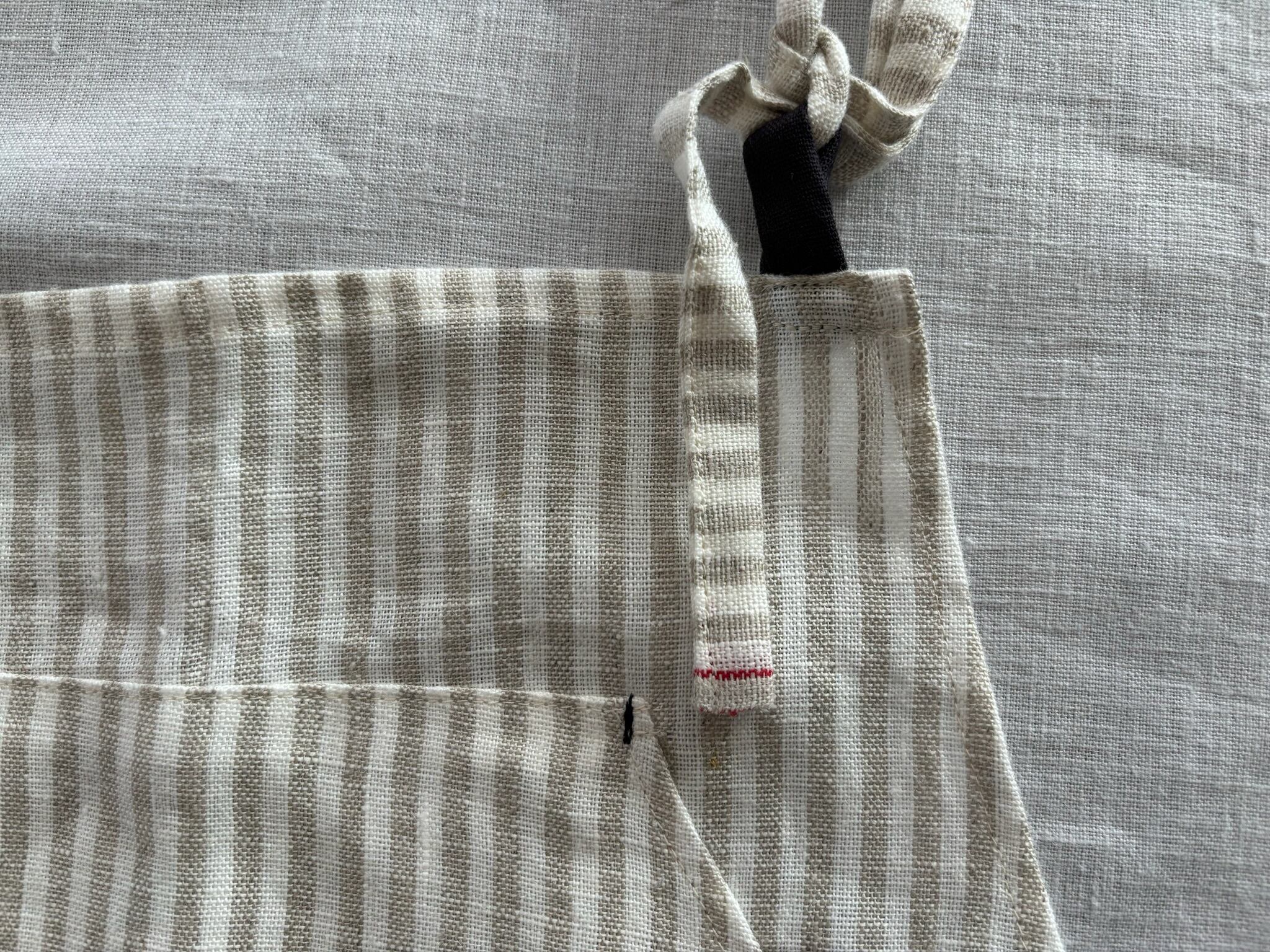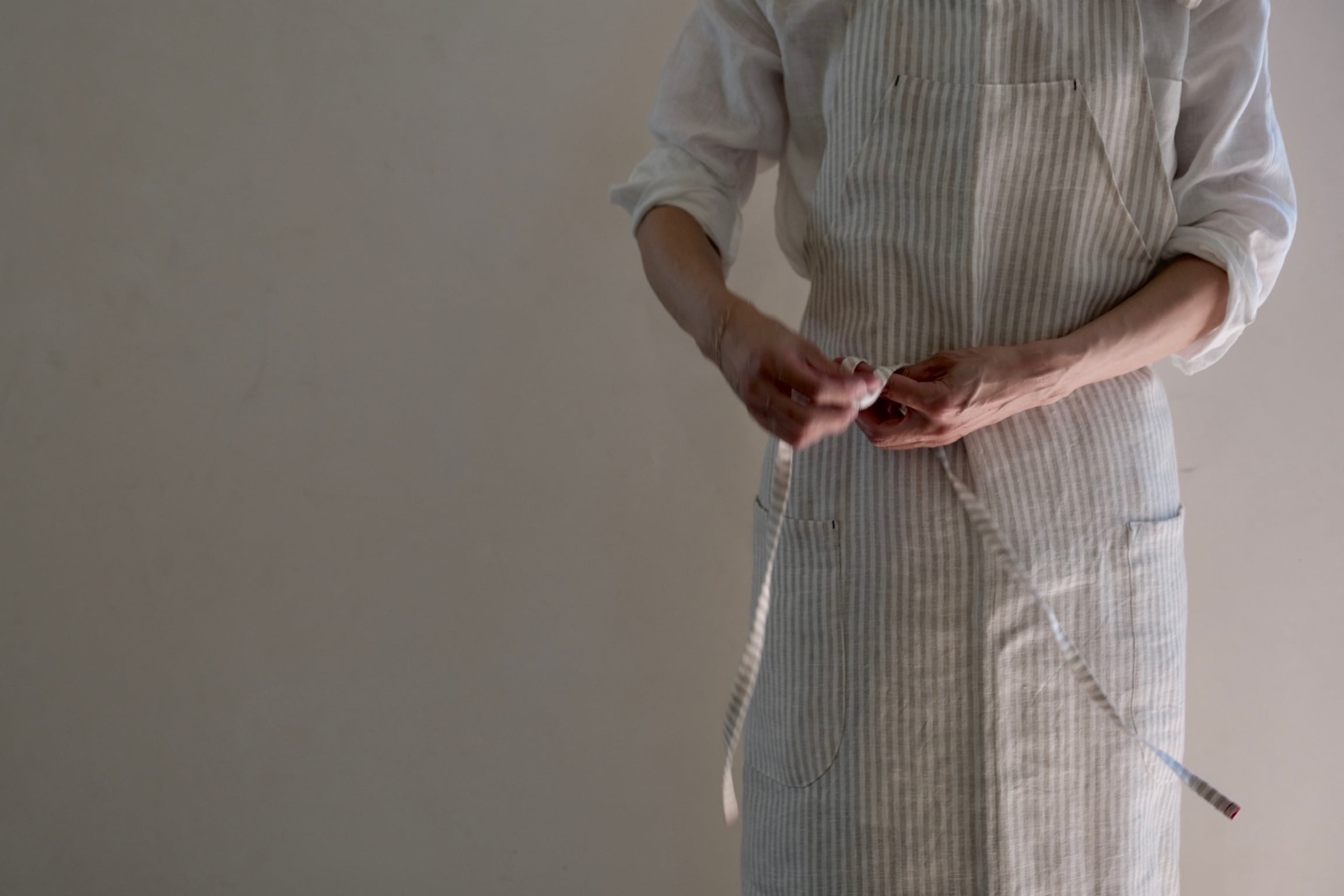 腰紐は、後ろで幾分上に持ち上げながらクロスし、お腹部分で結びます。