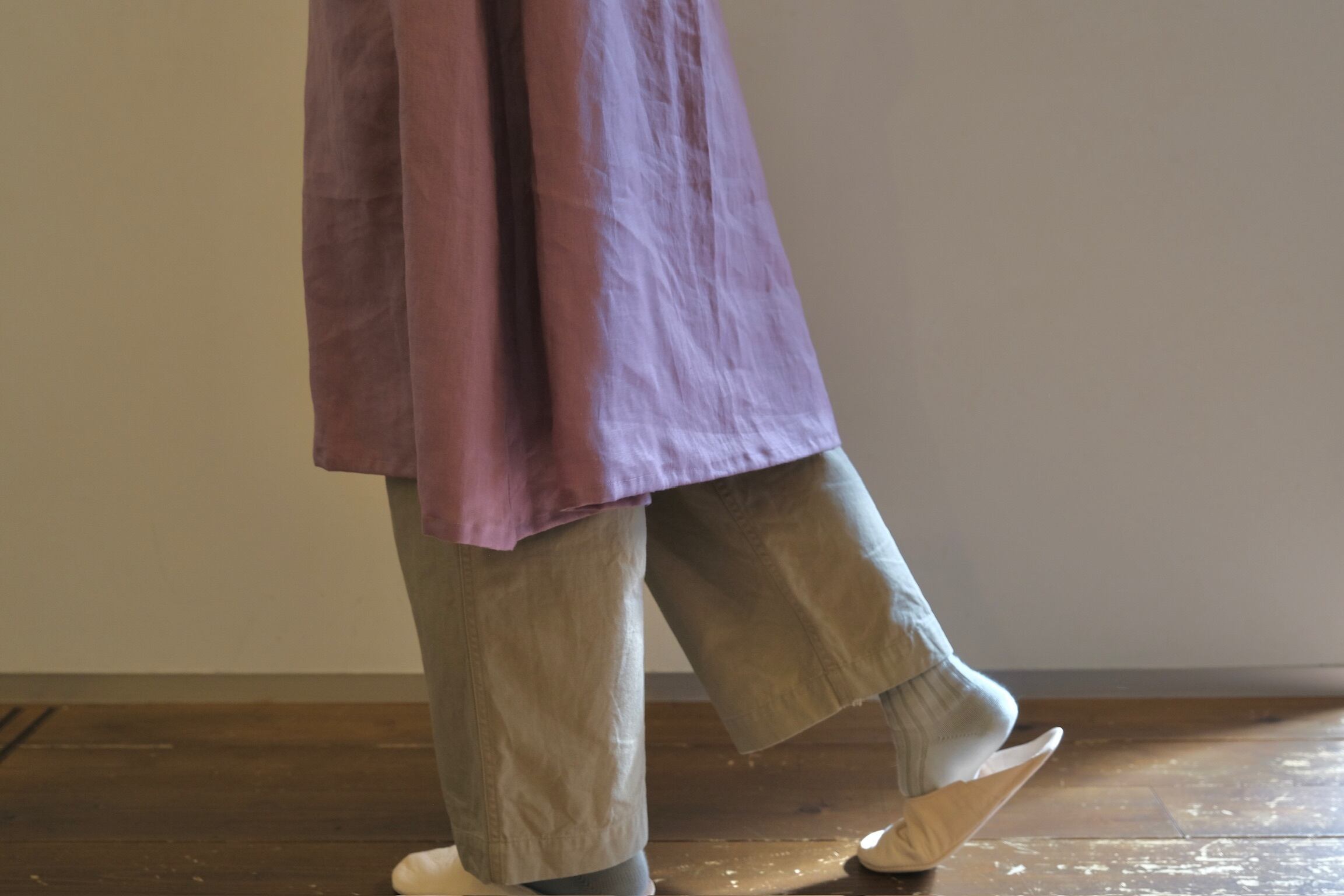 中に着るお洋服を選ばず、パンツでもスカートでもキマッてくれる一枚です。