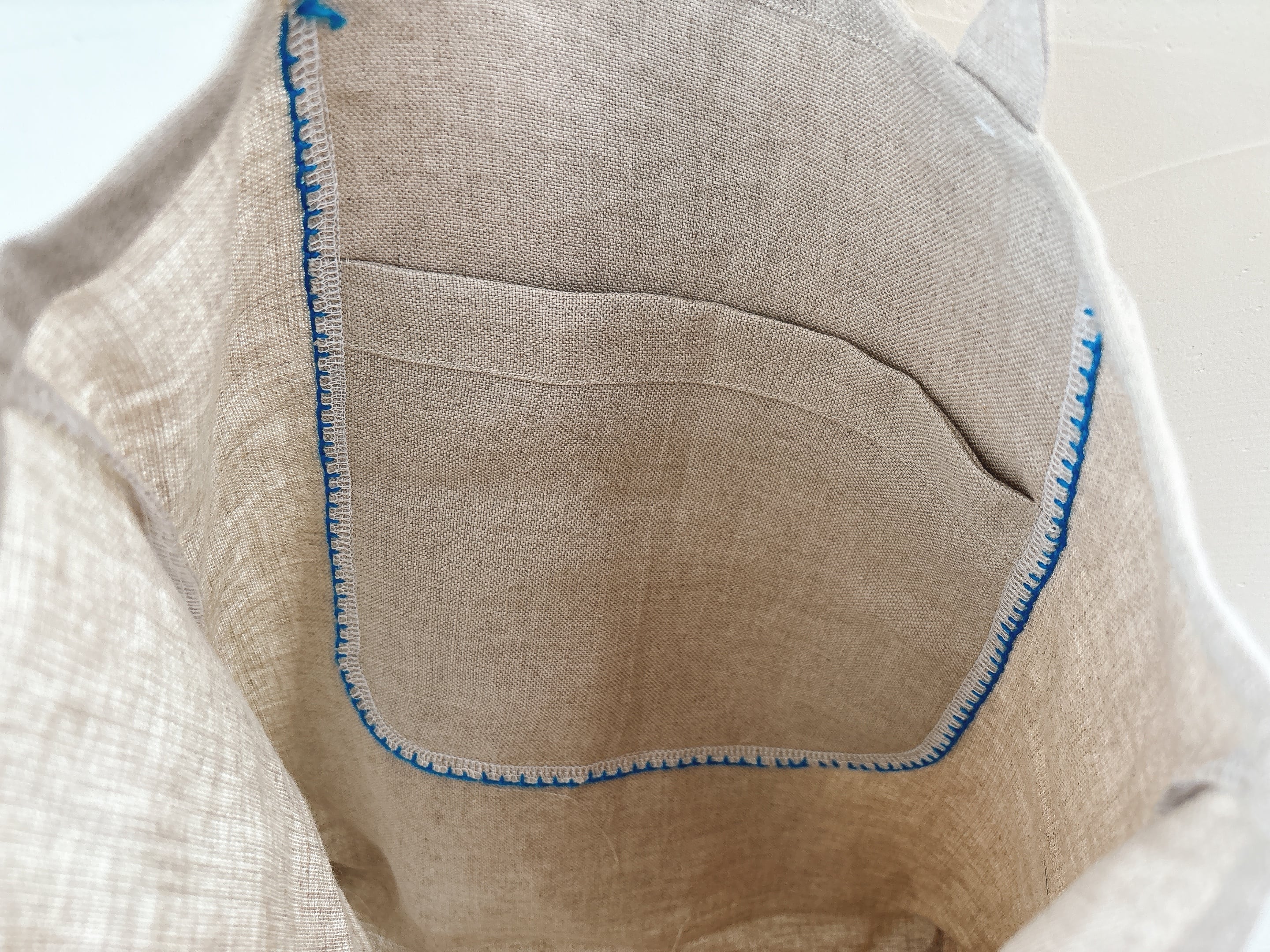 厚めのリネン一枚仕立てで、内側にポケットが一つ付いています。