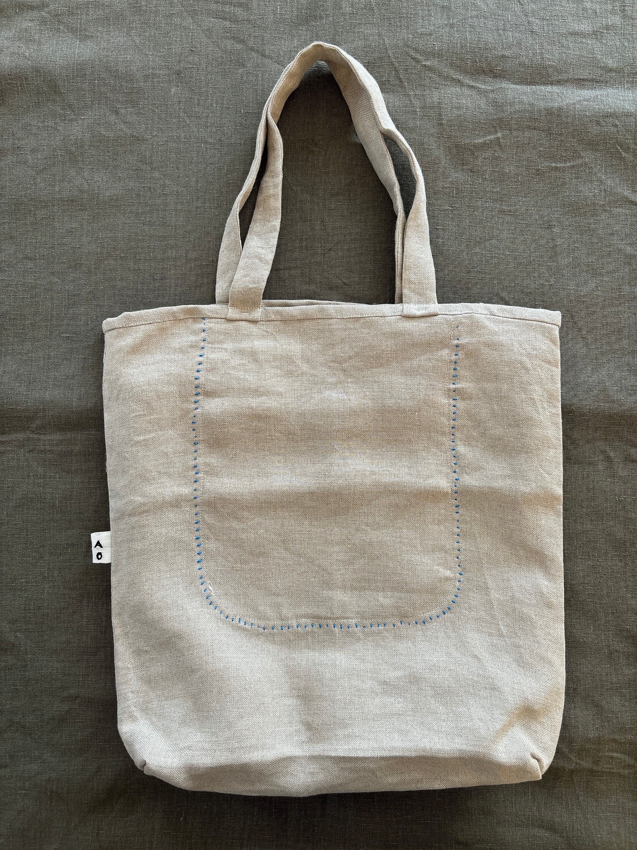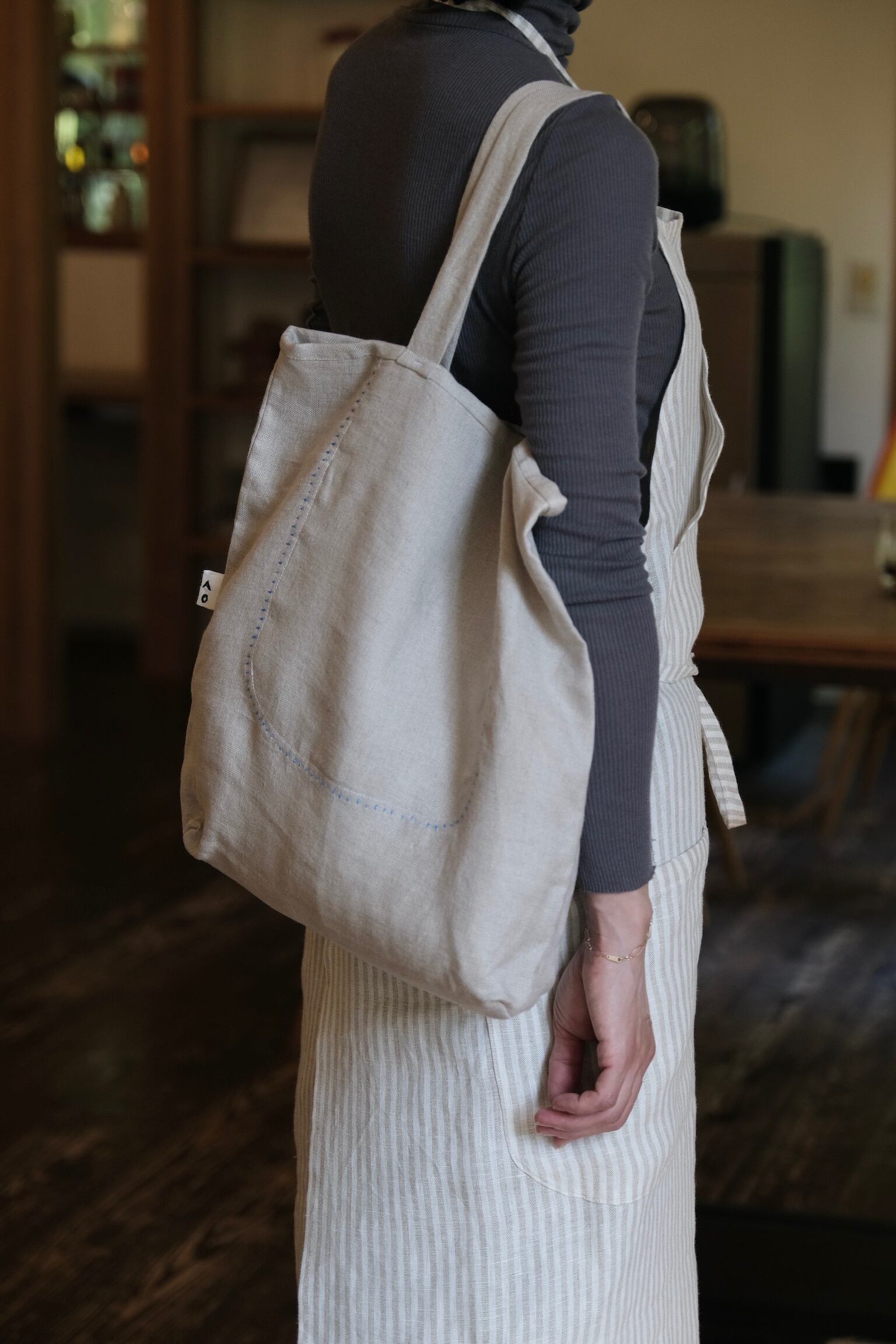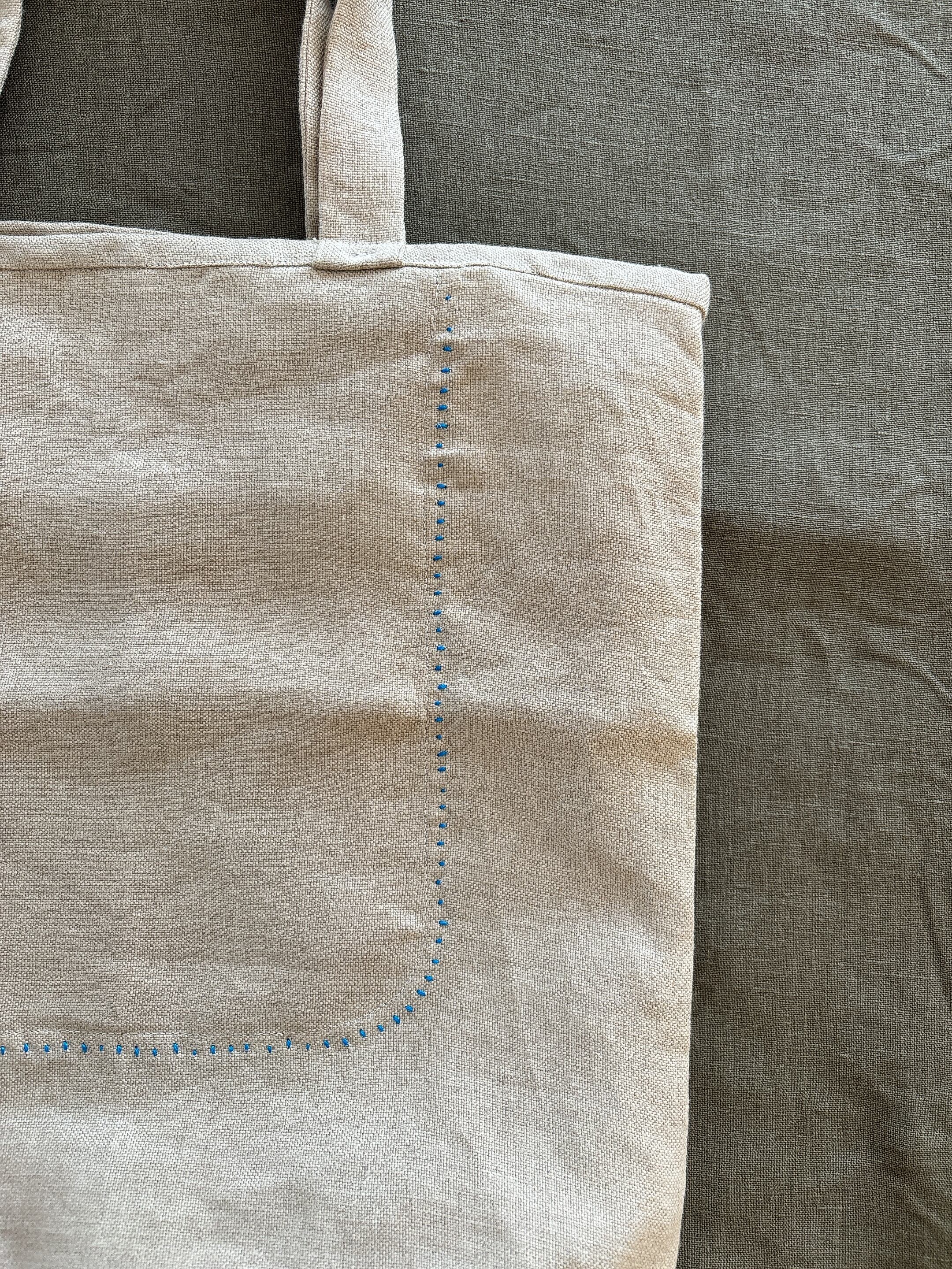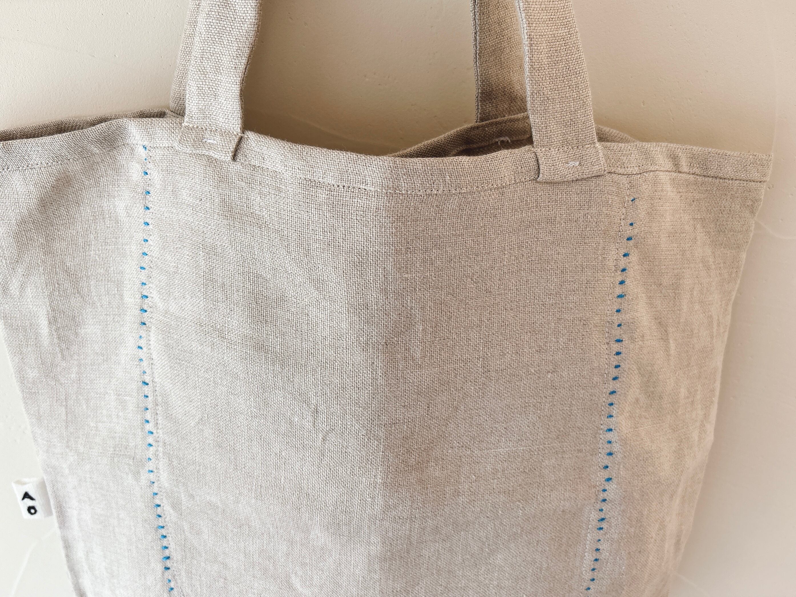 リネントートバッグ ( 水色ステッチ )