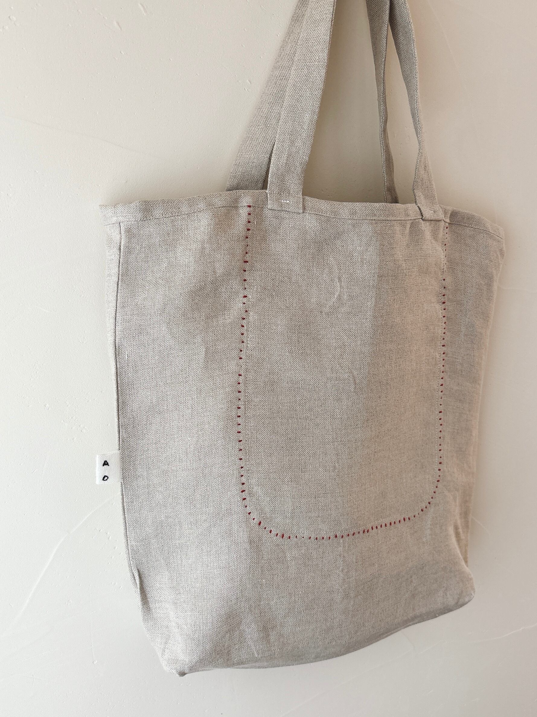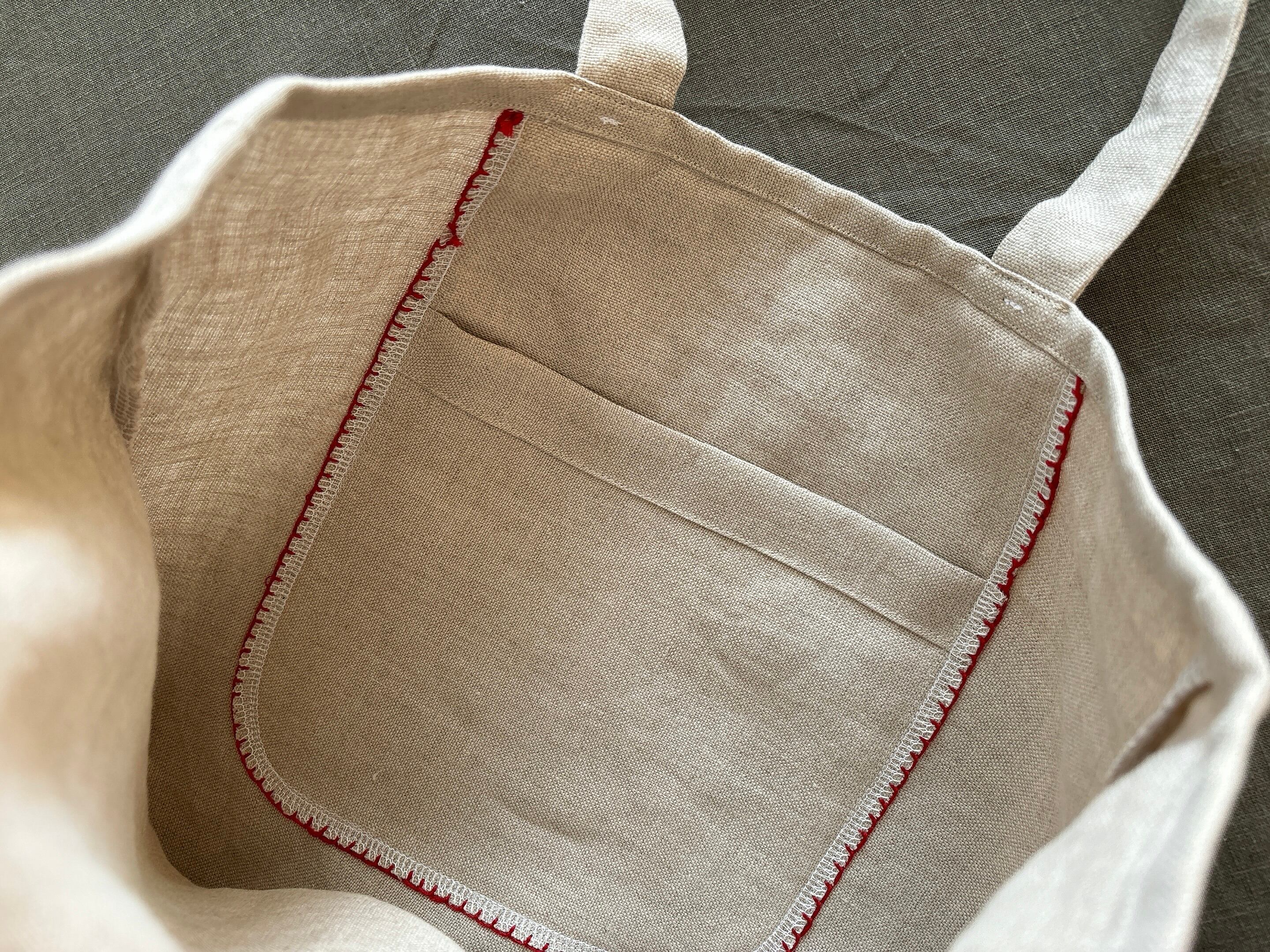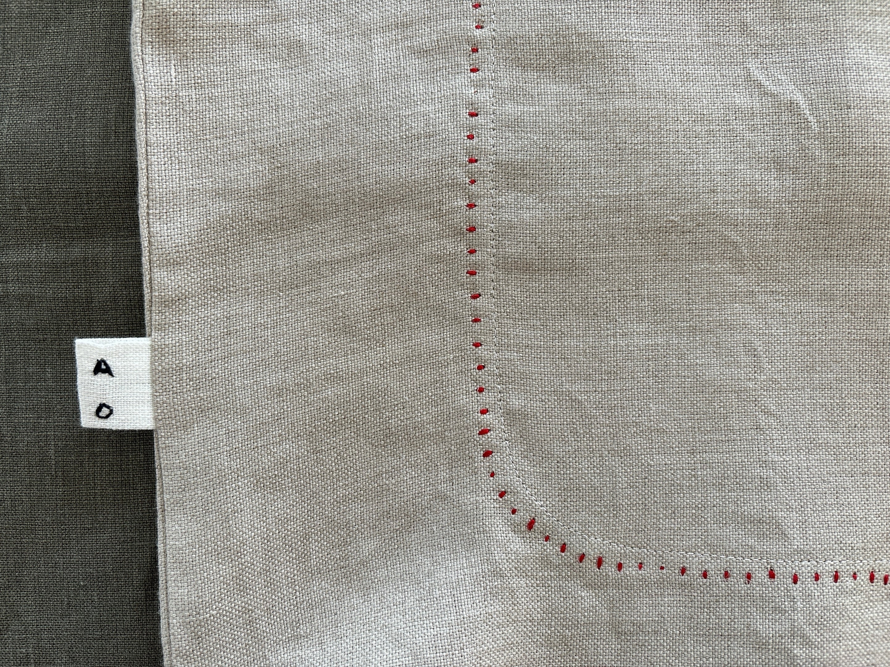 厚めのリネン一枚仕立てで、内側にポケットが一つ付いています。