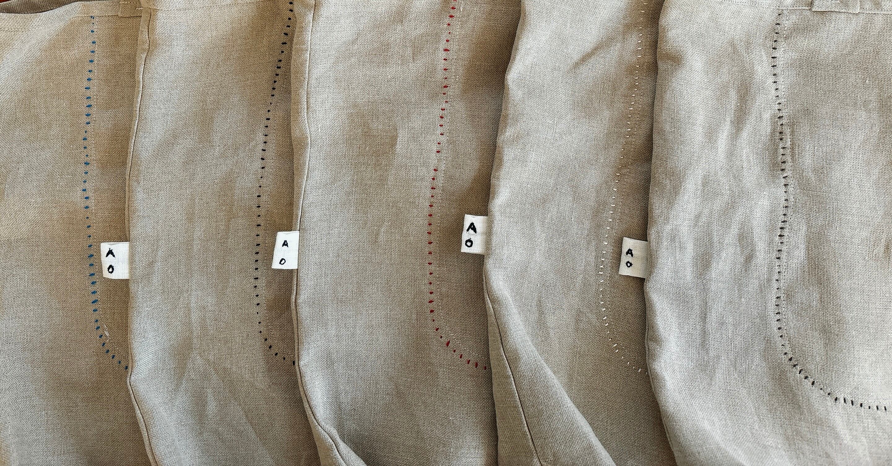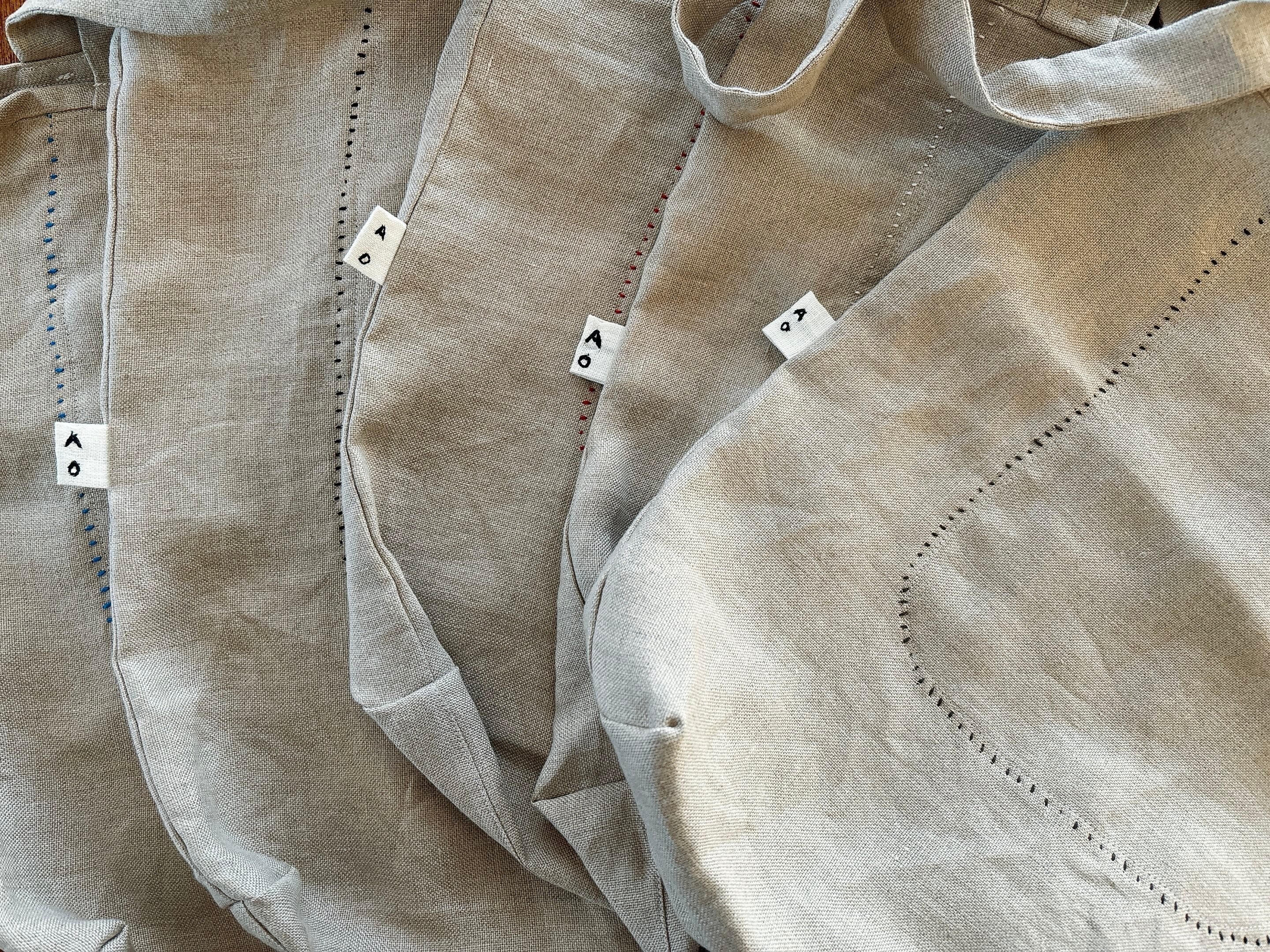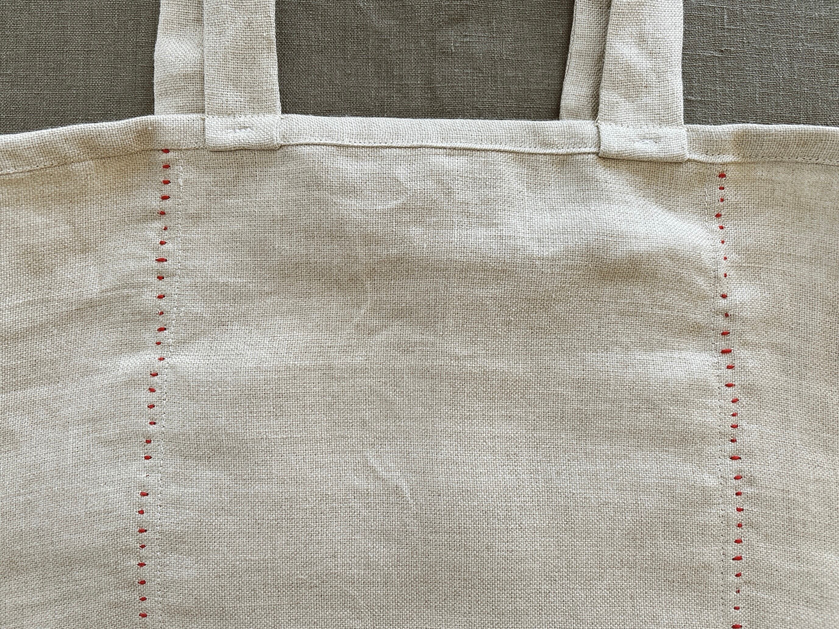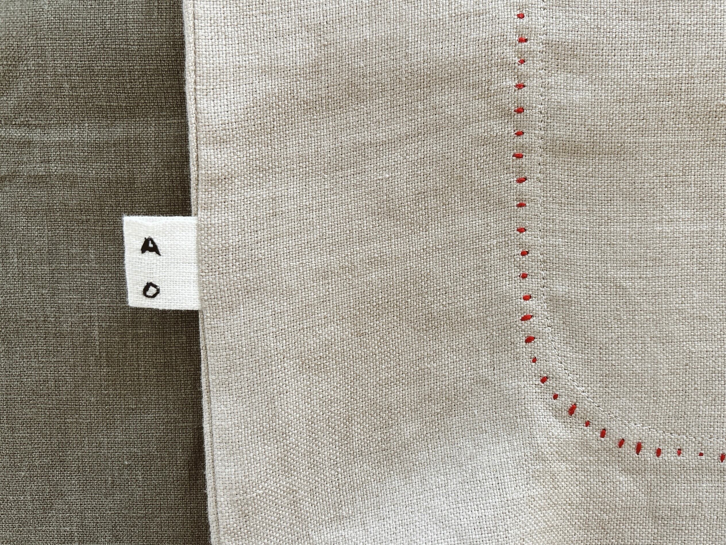 厚めのリネン一枚仕立てで、内側にポケットが一つ付いています。