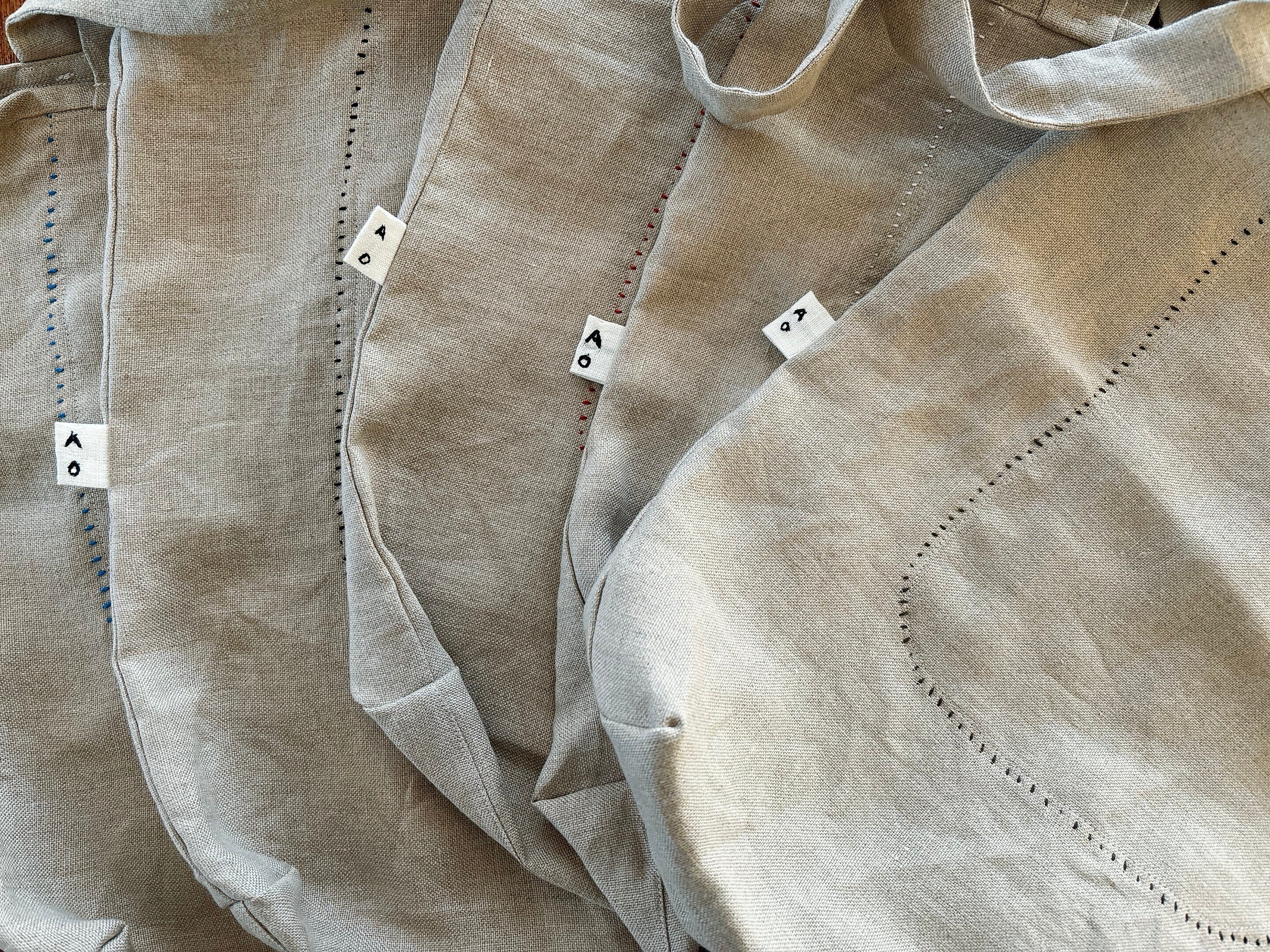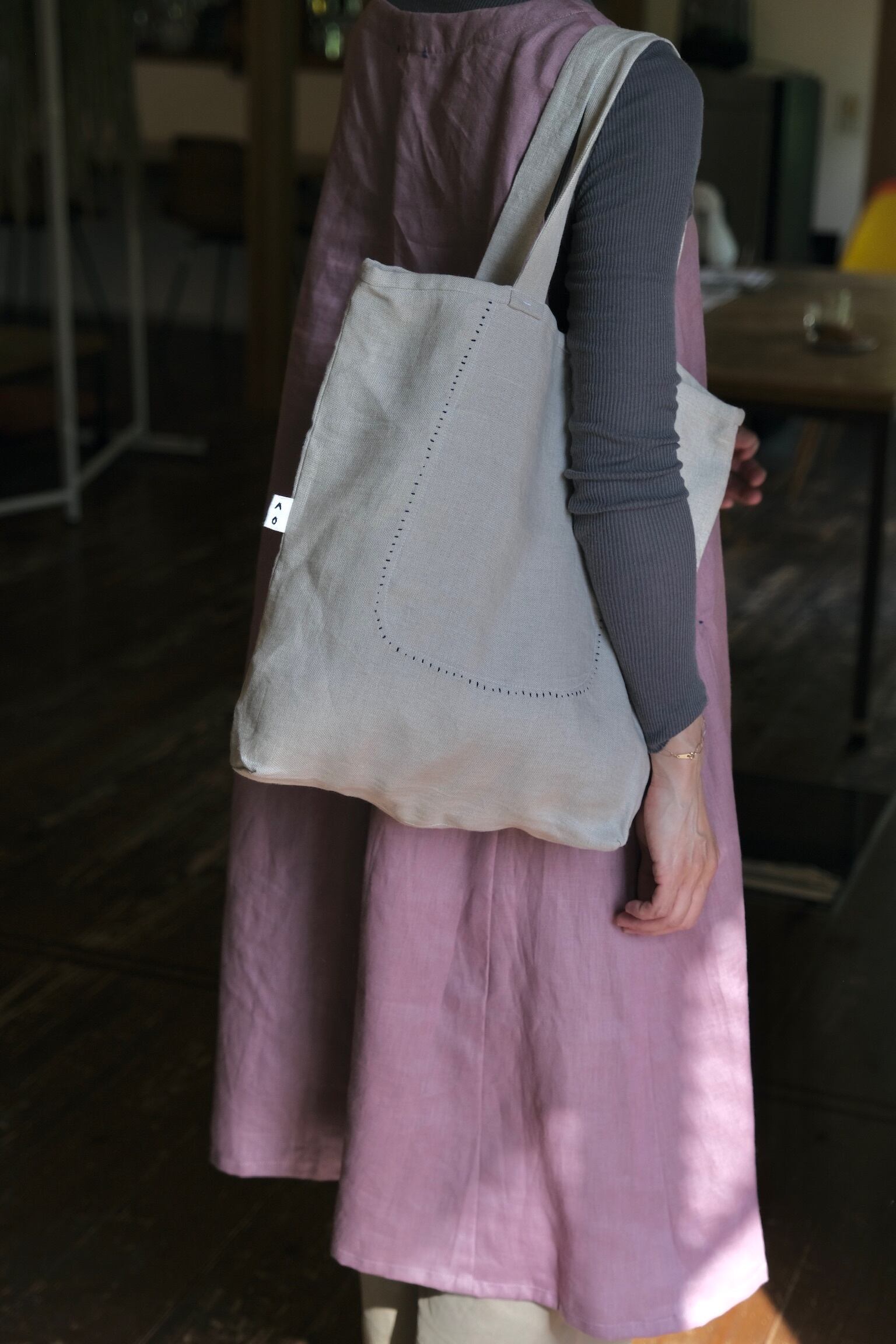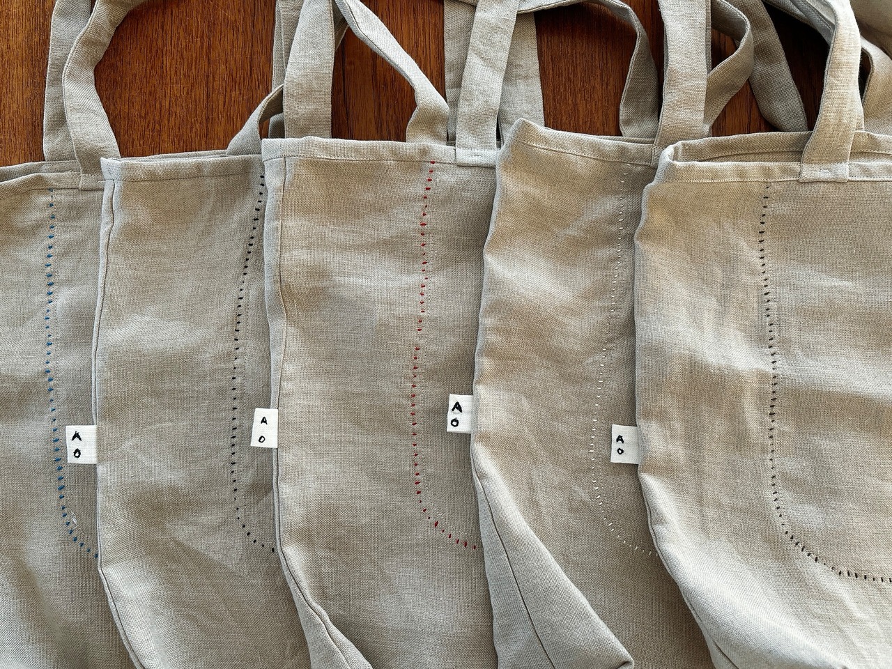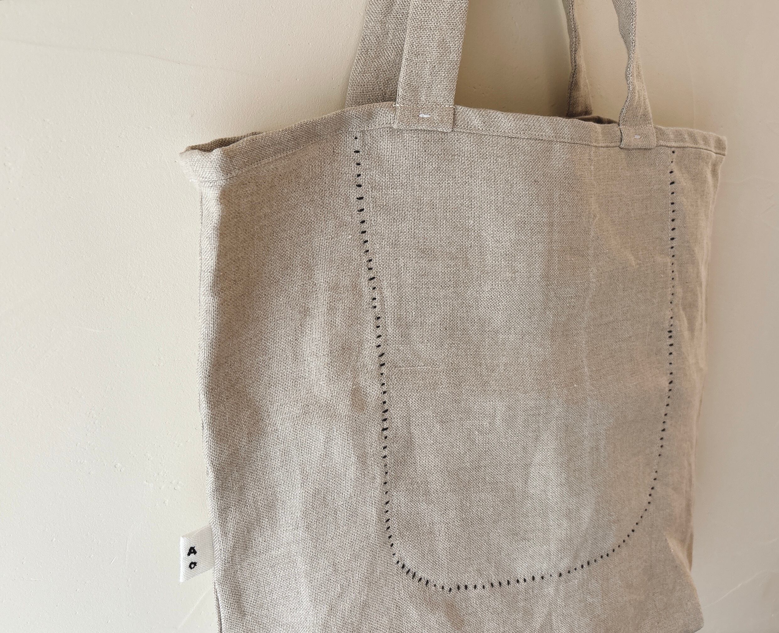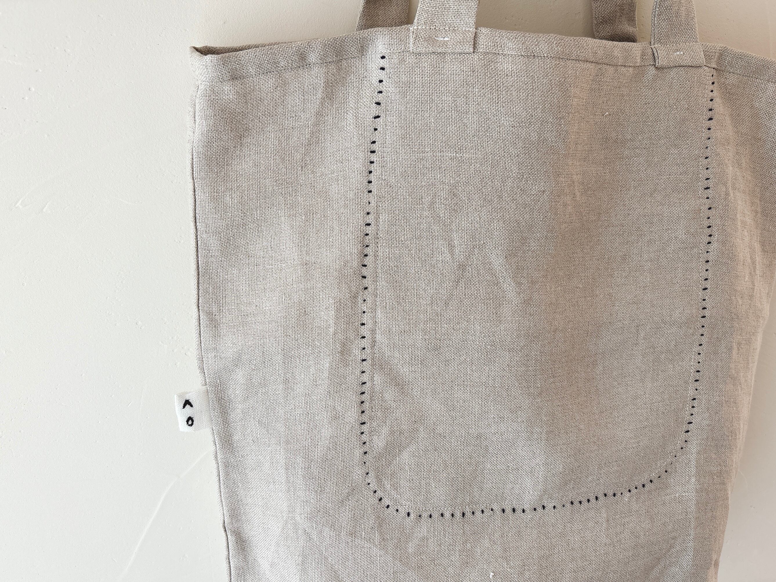 リネントートバッグ ( 黒みたいな濃い紺ステッチ)