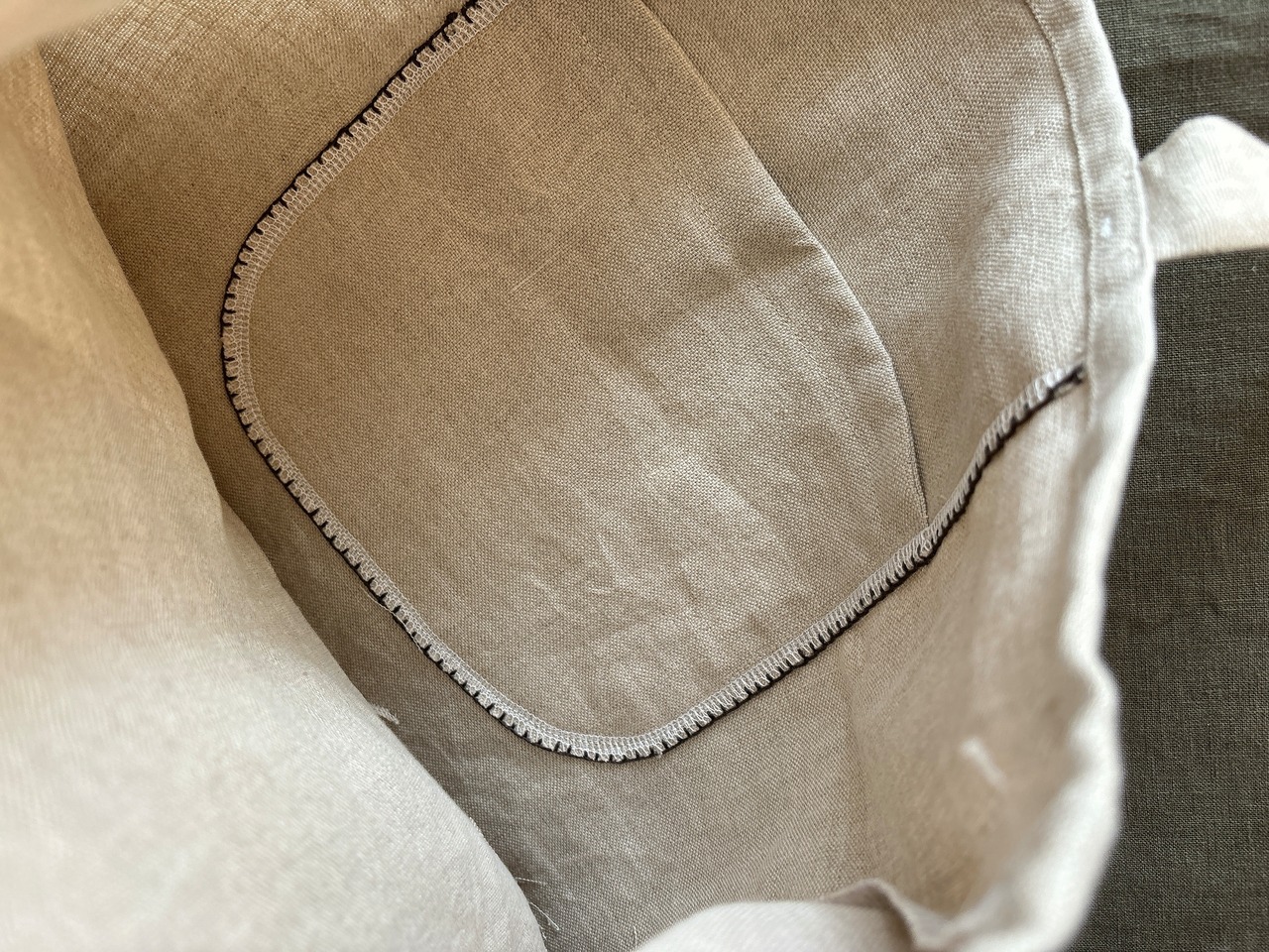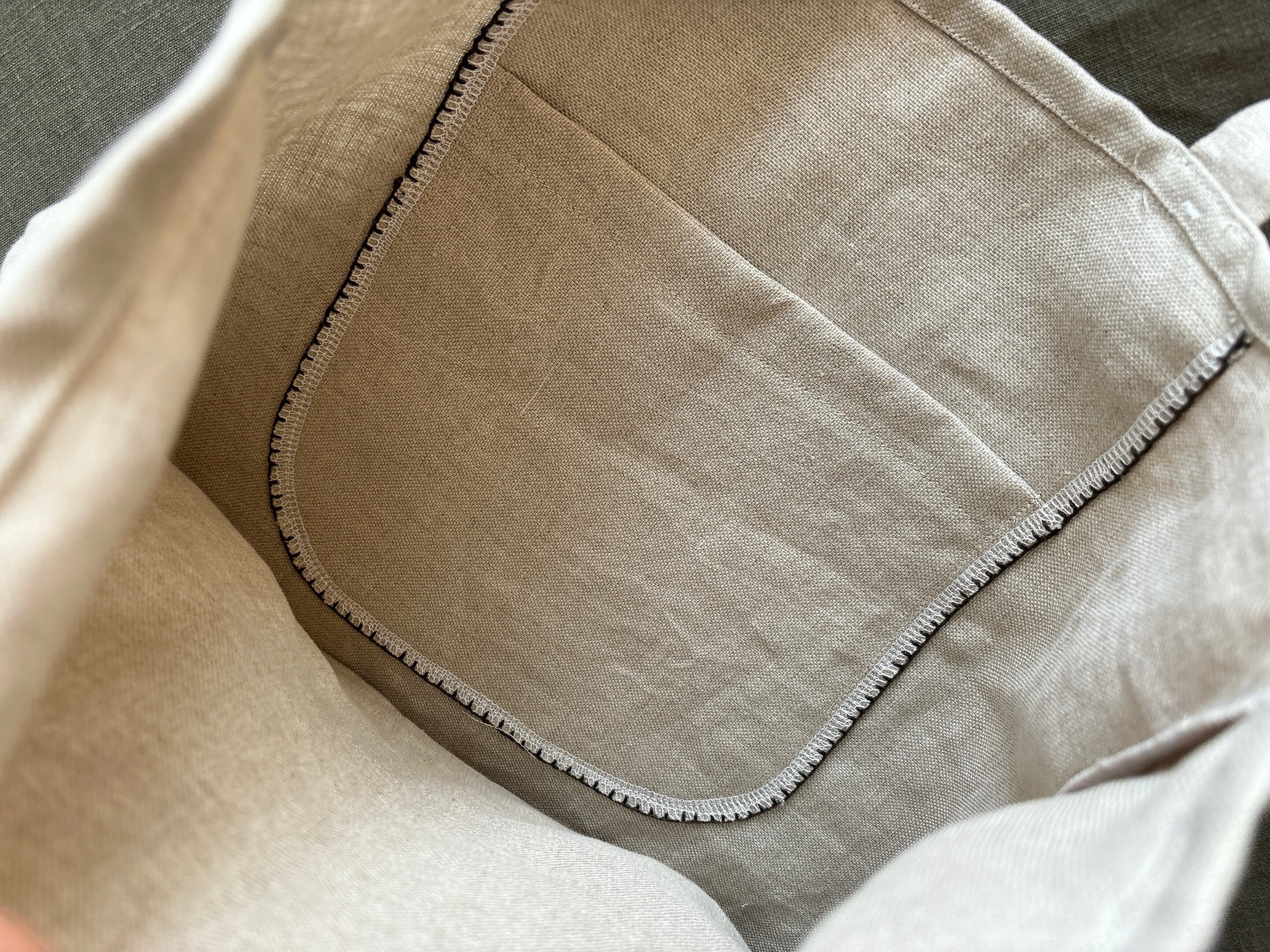 厚めのリネン一枚仕立てで、内側にポケットが一つ付いています。