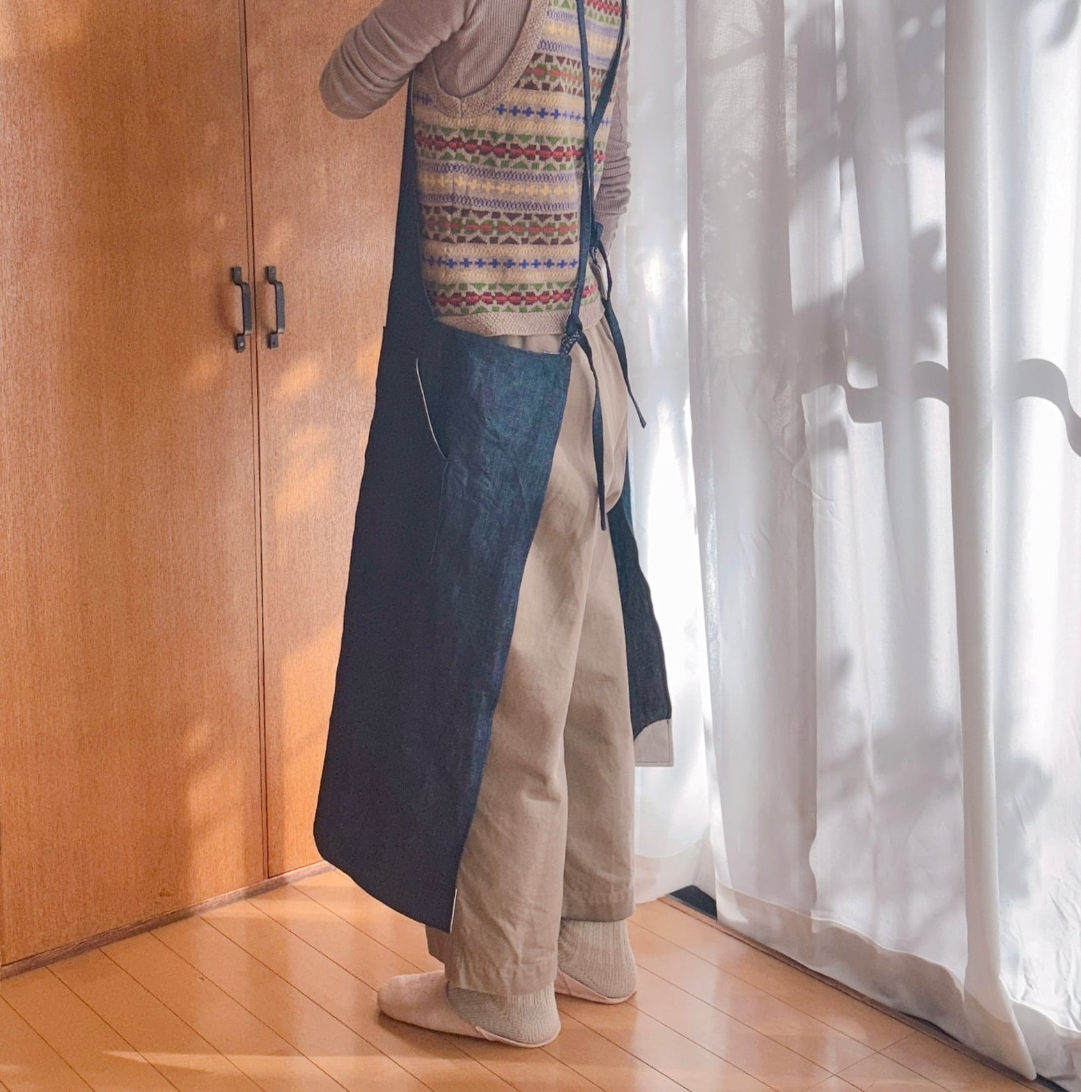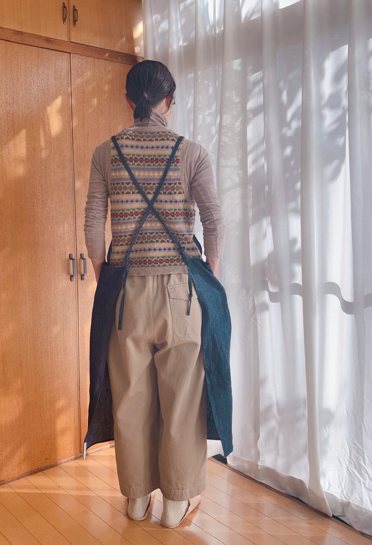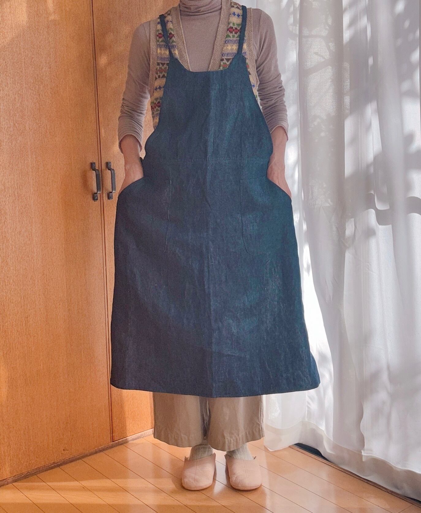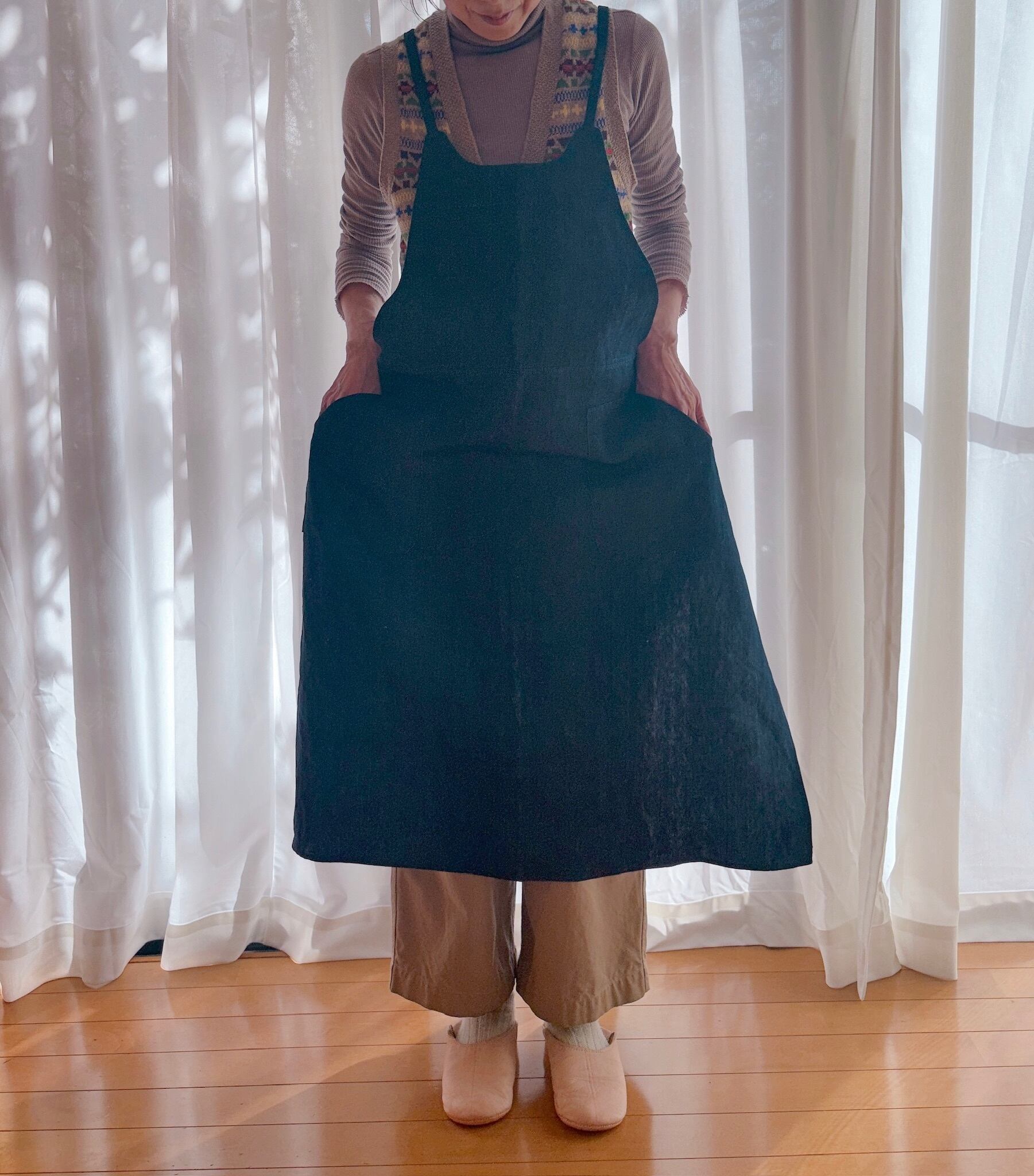 【サイズ】幅 約79.5㎝ / 丈 約93-97cm(胸あての低いところ‐高いところから裾まで)