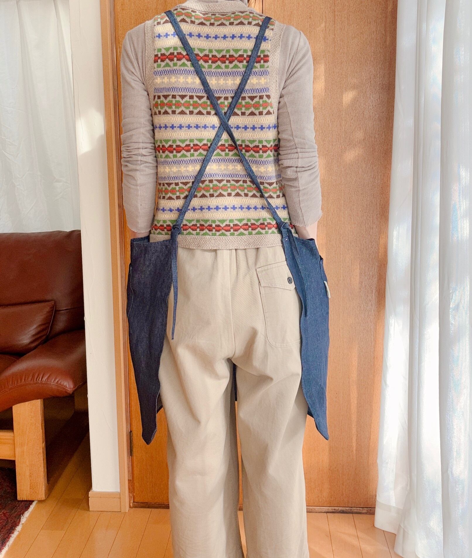 肩の凝らないバッククロスがなんともゆるい雰囲気で、年齢性別に関係なく着用していただける一枚です。